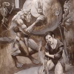 A second level of lycanthropy is also the changing of various parts of the body according to your will and going forth in the dream or in a meditative state in the ritual chamber. Some will take different parts of animals and go forth in a dreaming state, awakening with detail experiences, and having the attributes of the animal parts they formed. Another more intense area of the transformative state is from human to man-wolf to a dragon form, which the snout grows sharper teeth, horns emerge from the head and much of the fur dissipates. The flesh changes from ashen gray to a dark black-green scaled form. This is the Ahrimanic Dragon form, a state of being in which the Witch has begun a self-transformative state into a deep communion with Ahriman and Tiamat – the Druj of darkness who by their isolation and individual beings, bring the gift of the black flame to those who seek to be like them. In such an instance, focus your journey to Arezura, or Hell (a secret meeting place of witches) and record your results upon waking. Notice the beings you meet and all that is revealed to you. The methods of using a bone or charm designated through ritual practice and meditative awakening shall be something of a wolf-skin which activates mental transformation.