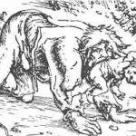 The child told her parents, on the occasion of her return home in a fit of terror, that she had been guiding her sheep as usual, but Grenier had not been present. Hearing a rustle in the bushes she had looked round, and a wild beast bad leaped upon her, and torn her clothes on her left side with its sharp fangs. She added that she had defended herself lustily with her shepherd’s staff, and had beaten the creature off. It had then retreated a few paces, had seated itself on its hind legs like a dog when it is begging, and had regarded her with such a look of rage, that she had fled in terror. She described the animal as resembling a wolf, but as being shorter and stouter; its hair was red, its tail stumpy, and the head smaller than that of a genuine wolf.
